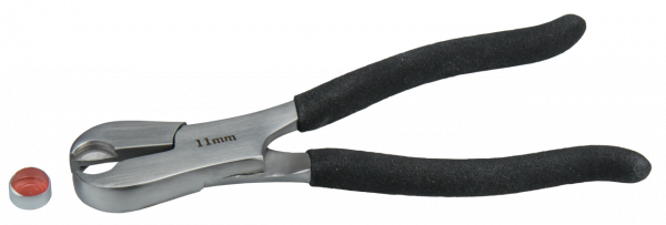 Decapping tool for 11 mm and 20 mm aluminum caps, manual, plier style, dual size