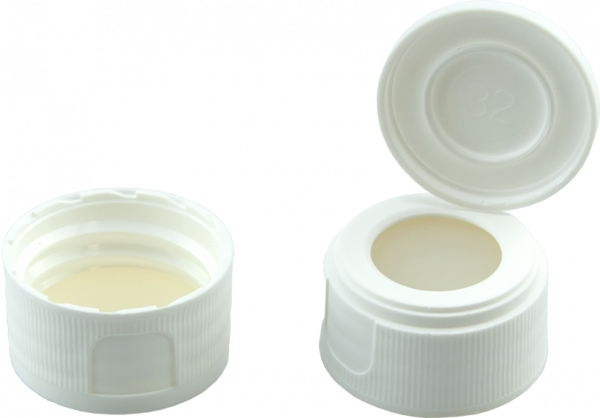 Screw closure (bonded), N 24, PP, white, c.hole,lid,Sil. nat./PTFE colorl.,3.2mm