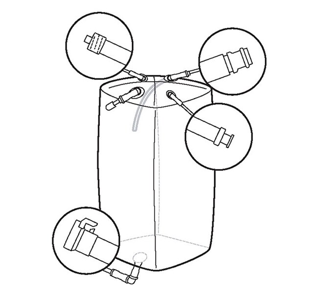 Productainer™ 3D BioProcess Container (BPC), Aegis™ 5-14 film, five ports, Luer locks + MPCs