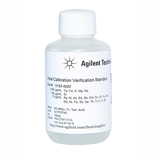 Initial calibration verification, 1,000 mg/L of Fe, K, Ca, Na, Mg; 100 mg/L of Sr; 10 mg/L of Ag, Al, As, Ba, Be, Cd, Co, Cr, Cu, Mn, Mo, Ni, Pb, Sb, Se, Tl, V, Zn, Th, U . Dangerous goods, not available in Japan