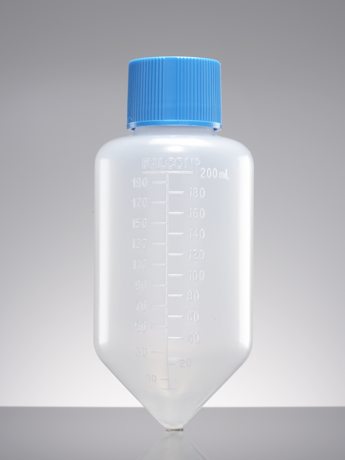 Falcon® 225 mL polypropylene (PP) conical centrifuge tubes have a 7,500 RCF rating. These sterile tubes come with polyethylene plug-seal screw caps and are packaged 8 to a bag and 48 to a case.
