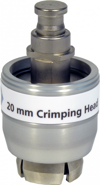 Accessories for electronic high power crimping tool. Crimping head for 20 mm crimp caps (aluminum, magnetic, bi-metal) for electronic high power crimping tool 735700. Note for storage of electronical crimper/decapper - Temperature 15°C–35 °C, humidity not more than 75%.