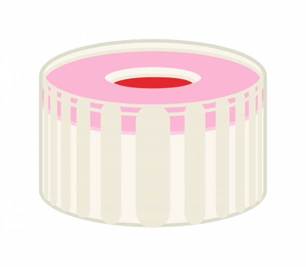 Screw closure, N 9, PP, transp., center hole, Red Rubber/FEP colorl., 1.0 mm