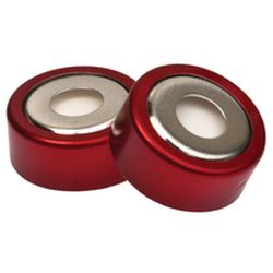20mm Magnetic Crimp Cap Red BiMetal, 3mm PTFE/Silicone Septum w/8mm Hole, 1000pk