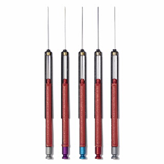 Smart SPME Arrow selection set 2. Includes five different Smart SPME Arrows (20 mm phase length): Smart SPME Arrow, acrylate, 1.10 mm, 100 µm phase thickness; Smart SPME Arrow, carbon wide range/PDMS, 1.10 mm, 120 µm phase thickness; Smart SPME Arrow, DVB