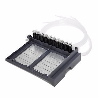 Tray for 2 well plates, with 10 funnels cooled