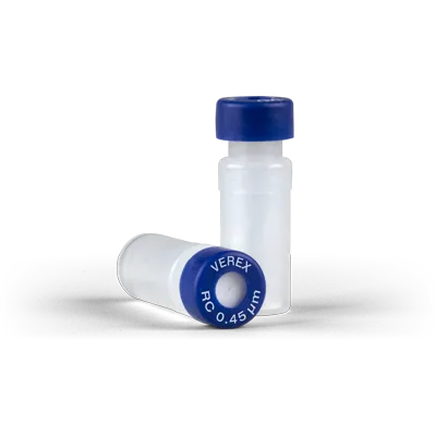 Sample Prep Simplified – Push to Filter, Ready to Inject!Verex Filter Vials are designed to provide simple and rapid sample preparation by incorporating a syringe, filtration membrane, vial, and cap/septa all into one product. Each filter vial is comprised of two parts: the external vial and internal plunger with an integrated filter and cap with a pre-slit PTFE/Silicone septa. Simply, dispense your sample into the external vial and compress the internal plunger to filter. This produces a particulate-free sample ready for analysis. Verex Filter Vials are a standard 12 x 32 mm vial and can be easily loaded into the autosampler. All-in-one sample prep solution Combines sample storage, transfer, and filtration Identifiable colored caps Easily find the correct membrane and pore size Low dead-volume Higher sample recovery and increased sensitivity Order Now